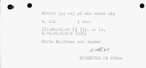 //// Sätter jag mej på min husse låg s. 131 1 str. //// (Tr.Nordl.60 Fj (Tr. nr 13, H.-C.VI:H:5:B (335) //// Ström Sv.Visor och Ramsor //// AföiéttéO //// BORGSTRÖM MS KVHAA ////