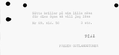 //// Sätta brillor på min lilla näsa ^^ för dina ögon så vill jag läsa //// Nr 69, sid. 58 3 str. //// i>ut //// FREDIN GOTLANDSTONER ////