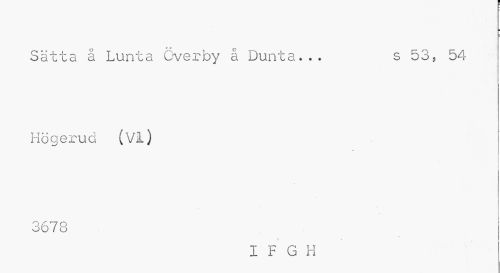 //// ¦ //// Sätta å Lunta överby å Dunta*.. s 53, 54 //// Högerud (VI) //// 3678 //// I F G H ////