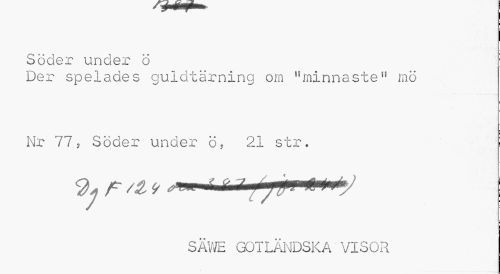 //// Söder under ö //// Der spelades guldtärning om "minnaste" mö Nr 77, Söder under Ö, 21 str. //// ! //// SÄWE GOTLÄNDSKA VISOR ////