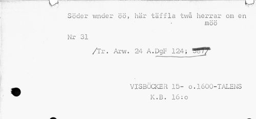 //// fl*^ * ¦ \ //// Söder wnder öö, här täffla twå herrar om en //// «»* * //// rnoo //// Nr 31 //// /Tr. Arw. 24 A.DgF 124; ^STJ //// » //// Ä VISBÖCKER 15- o.1600-TALENS //// ™ K.B. 16:o ////