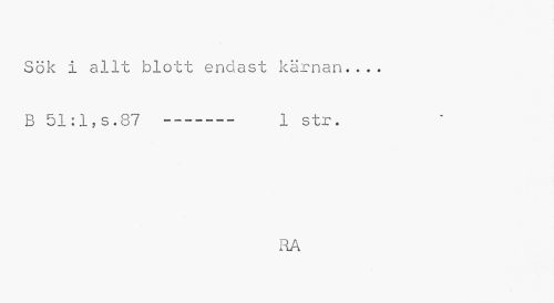 //// Sök i allt blott endast kärnan... B 51:l,s.87 - —--- 1 str. //// RA ////