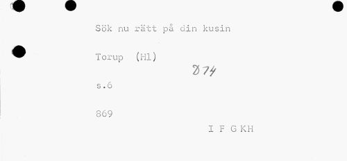 //// Sök nu rätt på clin kusin //// ^^ Torup (Hl) //// s. 6 //// 869 //// I F G KH ////