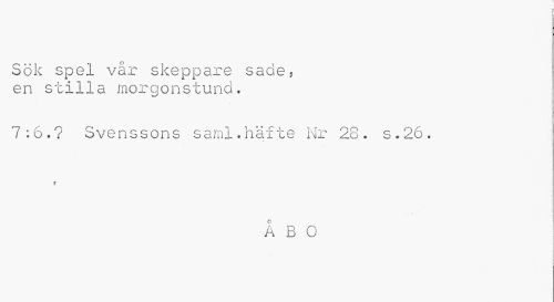 //// Sök spel vår skeppare sade. en stilla morgonstund. //// 7:6.? Svenssons saml.häfte Nr 28. s.26. //// r //// ÅBO [ ////