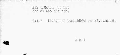 //// Sök trösten hos Gud och ej hos nån ann. //// 4:4.? Svenssons saml.häfte Nr 13.s.25-16. //// ÅBO ////