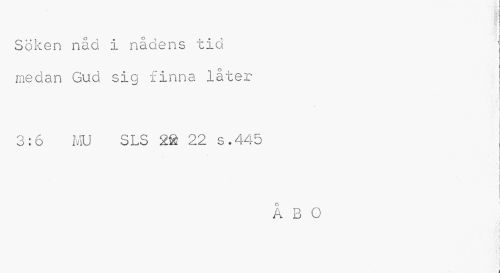 //// Söken nåd i nådens tid medan Gud sig finna låter //// i i //// ! //// i //// 3:6 MU SLS 2Ä 22 s.445 //// i //// I //// . i //// i //// ÅBO //// j //// i i ////