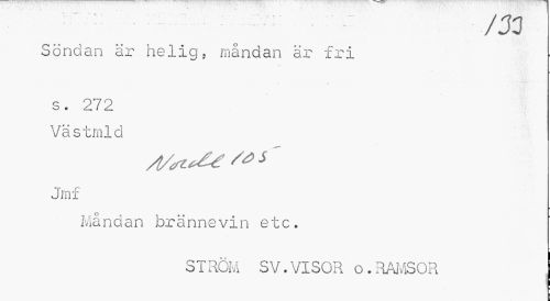 //// / 30 //// Söndan är helig, måndan är fri //// s. 272 Västmld //// Jmf //// Måndan brännevin etc. //// S T ROM SV.VISOR o.RAMSOR ////