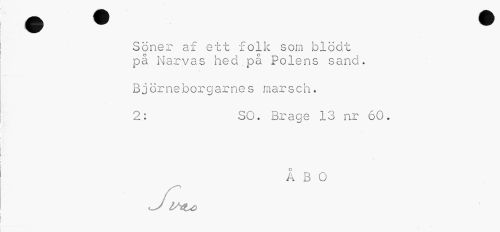 //// Söner af ett folk som blöcit på Narvas hed.på Polens sand. //// B j ör ne bor g arne s mar s c h. //// 2: SO. Brage 13 nr 60. //// ÅBO ////