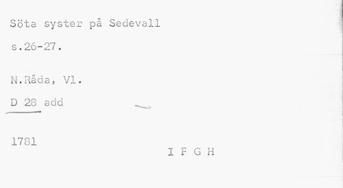 //// Söta syster på Sedevall s.26-27. //// N.Råda, VI. //// D 23 add ___— //// 1781 //// I F G H ////