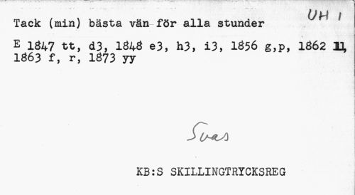 //// 1) u t //// Tack (min) bästa vän för alla stunder ! //// E 1347 tt, d3, 1340 e3, h3, 13, 1356 g,p, 1362 11 1363 f, r, 1373 yy //// uj ) //// J //// v //// KB:S SKILLINGTRICKSREG ////