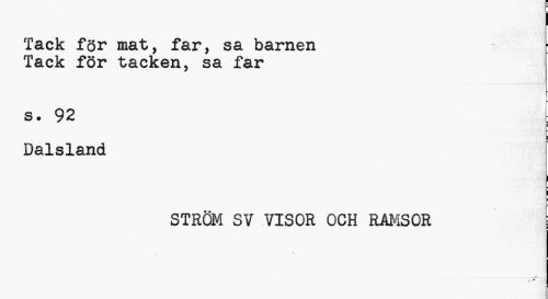 //// I //// Tack för mat, far, sa barnen Tack för tacken, sa far //// s. 92 //// ¦ ¦ ¦ //// Dalsland //// I //// STRÖM SY VISOR OCH RAMSOR j //// __1. ////
