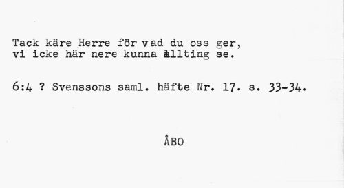 //// Tack käre Herre för vad du oss ger, vi icke här nere kunna ållting se. //// 6:4 ? Svenssons saml. häfte Nr. 17- s. 33-34» //// ÅBO ////