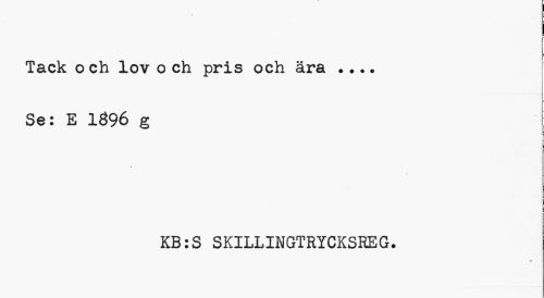 //// f I //// Tack och lov o ch pris och ära ... Se: E 1096 g //// KB:S SKILLINGTRYCKSREG. ////