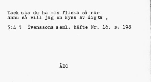 //// ¦ //// Tack ska du ha min flicka så rar ännu så vill jag en kyss av dig ta , //// 5:4 ? Svenssons saml. häfte Nr. 16. s. 19Ö j //// l //// i i //// i //// I //// ÅBO //// I ////