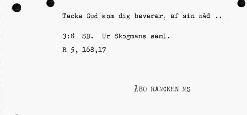 //// Tacka Gud som dig bevarar, af sin nåd .. 3:3 SB. Ur Skogmans saml. //// R 5, 163,17 //// ÅBO RANCKEN MS ////