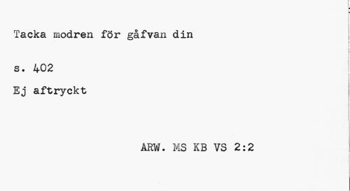 //// Tacka modren för gåfvan din i //// i //// e A //// s. 402 //// i //// Ej aftryckt //// t //// ARW. MS KB VS 2:2 ////