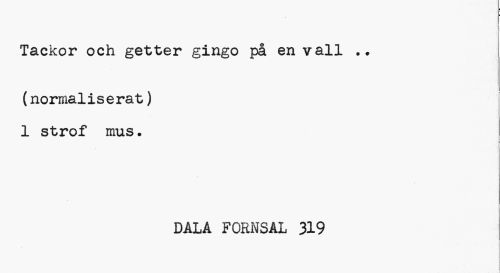 //// Tackor och getter gingo på en vall . • //// (normaliserat) 1 strof mus» //// i //// i //// ¦ //// DALA FORNSAL 319 //// I ////