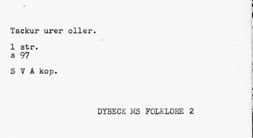 //// i //// Tackur urer oller. //// * - //// 1 str. //// s 97 l //// L i //// SVA kop. //// ¦ //// i //// DYBECK MS FOLKLORE 2 //// i //// ¦ ////