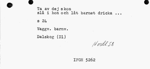 //// Ta av dej skon //// slå i hon och låt barnet dricka ... s 24 //// Vaggv. barnv. Dalskog (Dl) //// //rtdéSé //// IFGH 5262 ////