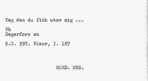 //// Tag den du fick utav mig •.. //// t //// Vb //// Degerfors sn //// i //// E.U. 597- Visor, I. 1Ö7 //// NORD. MS. //// j //// ¦ ////