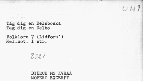 //// U H I' //// . . . fWL: v //// Tag dig en Delsboska Tag dig en Delbo //// Folklore V (Lidfors') Mel.not. 1 str. //// du/ //// DYBECK MS KVHAA MOBERG EXCERPT ////