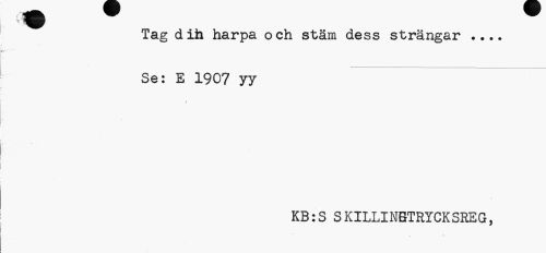 //// v ¦ //// Tag difa harpa och stäm dess strängar ... //// Se: E 1907 yy //// i //// i //// kb:S S KILLINBTRICKSREG, ////