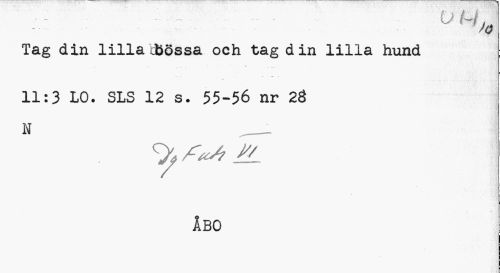 //// - ~ ...U M //// ¦Jo //// Tag din lilla tbössa och tag din lilla hund //// - • ¦ v //// 11:3 LO. SLS 12 s. 55-56 nr 28 //// N ___ //// ÅBO ////