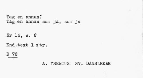 //// Tag en annanC //// Tag en annan som ja, som ja //// Nr 12, s. 8 End.text 1 s tr. D 78 //// v ' //// Å. YSENIUS SV. DANSLEKAR ////