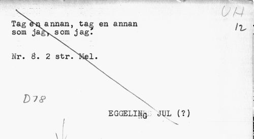 //// v Ub4 //// Tag e^i annan, ta^ en annan som ja^ysom jag. //// Nr. Ö. 2 str/^1. //// \ //// D 7S> \N //// EGGELINq.]" JUL (?) I //// I * ^ //// \ h ////