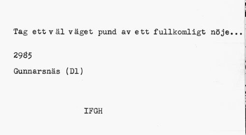 //// i //// Tag ett väl väget pund av ett fullkomligt nöje... //// ¦ //// 2935 //// s ¦ //// ¦ //// Gunnarsnäs (Dl) //// i i //// IFGH //// c ////