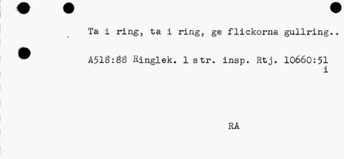 //// Ta i ring, ta i ring, ge flickorna gullring.. //// ® A516:ÖÖ Ringlek. 1 str. insp. Rtj. 10660:51 //// x //// RA ////