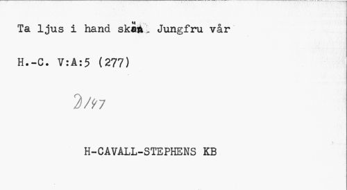//// Ta ljus i hand ska*. Jungfru vår //// H.-G. V:A:5 (277) //// r //// 2/97 //// H-CAVÅLL-STEPHENS KB ////