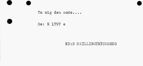 //// Ta mig den onde... //// ® Se: N 1797 e //// KB:S SKILLINGTRYCKSREG ////