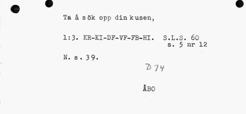 //// Ta å s ök opp din kusen, //// 1:3* KR-KI-DF-VF-FB-HI. S.L.S. 60 //// s. 5 nr 12 //// 4 //// N. s . 39. //// 7)7V //// ÄBO ////