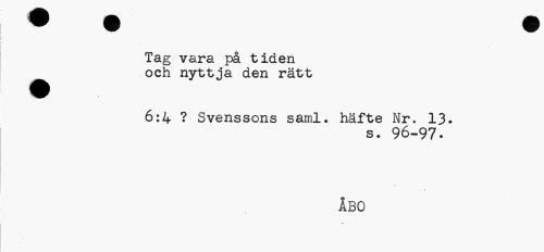//// Tag vara på tiden och nyttja den rätt //// 6:4 ? Svenssons saml. häfte Nr. 13. //// s. 96-97* //// i //// ÅBO ////