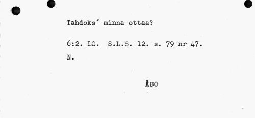 //// Tahdoks' minna ottaa? //// 6:2. LO. S.L.S. 12. s. 79 nr 47. N. //// Ibo //// -r ////