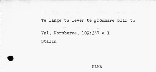 //// * * //// Te länge tu lever te grömmare blir tu //// <1 m. ~ . • //// Vgl, Korsberga, 109:347 a 1 Stalin //// ULMA ////