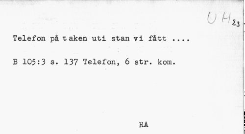 //// Telefon på taken uti stan vi fått ... //// •t //// B 105:3 s. 137 Telefon, 6 str. koin. //// RA i ////