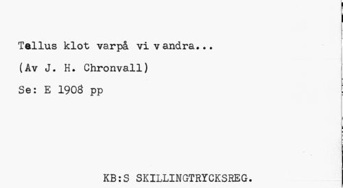 //// Tellus klot varpå vi vandra... (Av J. ti. Chronvall) //// Se: E 1908 pp ! //// i //// KB:S SKILLINGTRYCKSREG. ////