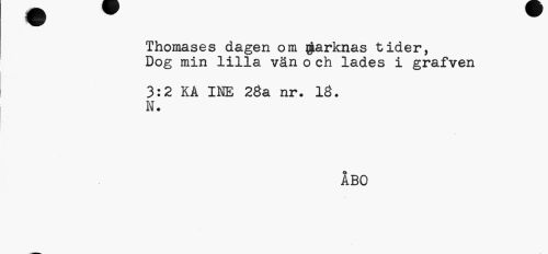//// Thomases dagen om $arknas tider, Dog min lilla vän o ch lades i grafven //// 3:2 KA INE 2Öa nr. 18. N. //// ÅBO ////