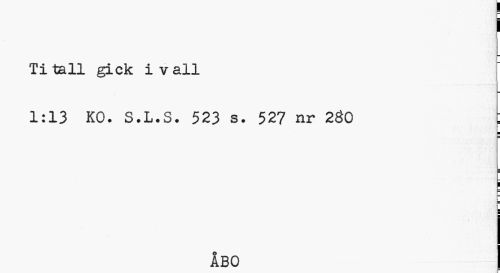 //// i //// Ti tall gick i v all //// 1:13 KO. S.L.S. 523 s. 527 nr 2Ö0 //// ¦ //// ! //// P //// t //// ÅBO ////