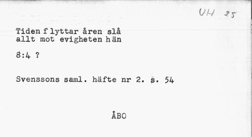 //// Tiden flyttar åren slå --- //// allt mot evigheten hän //// 0:4 ? //// Svenssons saml. häfte nr 2. s» 54 //// ÅBO ////