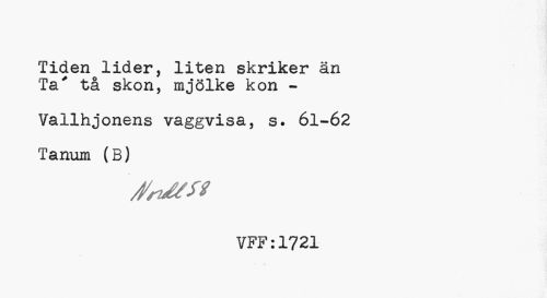 //// Tiden lider, liten skriker än Ta' tå skon, mjölke kon - //// Vallhjonens vaggvisa, s. 61-62 Tanum (B) //// VFF:1721 //// ¦ .v ////