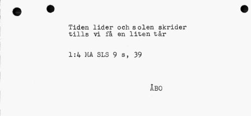 //// Tiden lider och solen skrider tills vi få en liten tår //// 1:4 MÅ SLS 9 s, 39 //// ÅBO ////