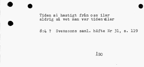 //// Tiden så hastigt från oss ilar aldrig så vet man var tiden vilar //// 0:4 ? Svenssons saml. häfte Nr 31, s. 119 //// ÅBO //// * ////