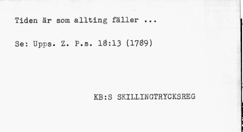 //// > //// Tiden är som allting fäller ... //// Se: Upps. Z. P.s. 10:13 (1789) //// KB: S SKILL IN GTRYC KS RE G ////