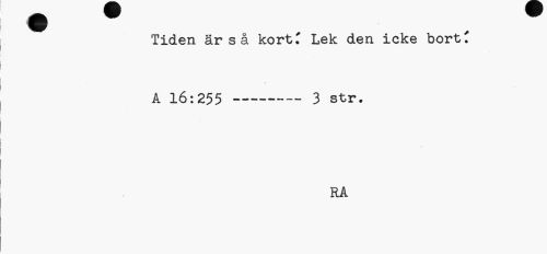 //// Tiden är så kortT Lek den icke bort C //// A 16:255---3 str. //// RA ////