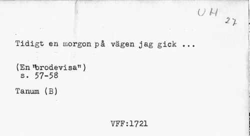 //// U H //// n . //// « //// Tidigt en morgon på vägen jag gick ... //// u //// (En 'brodevisa") s. 57-58 //// Tanum (B) //// ¥FF:1721 ////