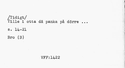 //// /Tidigt/ //// Tille i otta dä panka på dörre ... s. 14-21 Bro (B) //// VFF:1422 //// i ////