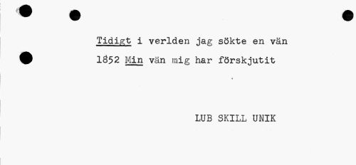 //// Tidigt i verlden jag sökte en vän 0 1852 Min vän mig har förskjutit //// tr //// LUB SKILL UNIK ////